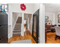Location, location! The "property type" on Geowarehouse is a duplex but currently being used as a single-family home, there are 2 separate hydro meters - GREAT potential to reconvert! Paved driveway! Covered front porch! Spacious welcoming entry! The floor plan lends itself for many different living options. The SUPER nice kitchen had an upgrade in 2015 & still very much still in style.. shaker style cabinets, subway tile backsplash, stainless appliances & access to a covered porch perfect for dining el fresco! Site finished hardwood throughout! Both living & dining room are a great size & have crown molding. On the second level there are 3 bedrooms PLUS a den (currently being used as a closet) Bedroom 2 & the den have access to balconies! The laundry is in the full height lower level where you will also find ample storage. Furnace & HWT 2022// Possession can be anytime AFTER July 1st (id:61594)
