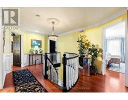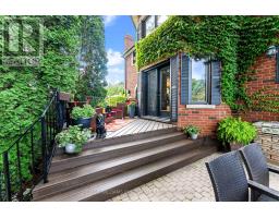 Welcome to this beautifully renovated red-brick gem in the heart of Cobourg - a spacious 6-bedroom, 3-bathroom home set on an expansive lot, offering almost 4,100 liv. sq. ft. of stylish, functional living space originally built as the neighbourhood builder's home. Step inside to find tasteful upgrades that blend modern finishes with timeless charm, hardwood floors throughout, and elegant crown moulding. The main level features a bright, open & functional layout ideal for both everyday living and formal entertaining & dining. The newly renovated kitchen features stainless steel appliances, stone countertops, marble backsplash, Italian cement tiles, a butler pantry, and a charming coffee + wine bar. With 4generously sized bedrooms upstairs & 2 full bathrooms, there's more than enough space for a growing family, home office setup, or multigenerational living. 1300 square feet of finished living space awaits downstairs, featuring two more well appointed bedrooms, a newly renovated en suite bathroom, and a cozy living area with a fireplace. Outside, step into a backyard of rare distinction - a thoughtfully designed and manicured outdoor retreat nestled on an oversized lot, where every detail offers serenity and sophistication. This meticulously landscaped backyard features multiple sitting and dining areas, a beautiful stone pathway leading to an oversized fire pit, and over 60 trees including rare exotics. Enjoy a tranquil fish pond, full irrigation system, outdoor soffit lighting, and absolute privacy. Over $100,000 was invested in creating this elegant, estate-quality outdoor space - perfect for both entertaining and everyday serenity. Bonus features include brand new windows &doors, 50 yr warranty roof, energy efficient furnace + A/C and so much more! Don't miss your chance to own a one-of-a-kind property with space, style, and sophistication in a prime, family-friendly neighbourhood close to schools, parks, shops, and Cobourg's charming downtown and beaches (id:61594)
