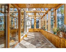 A four-bedroom passive solar home (with a fresh heat pump for the convenience, and the savings, and the new extremes of hot and cold) set on over an acre both landscaped and wild, just north of the city (at Unity Road). There is a serious cross-section of petrified wood set like a portrait into the majestic sandstone fireplace at the heart of this thrillingly off-beat, as well as smartly designed and organized home. There is a sauna tucked away. A towering south-facing solarium of glass segmented by golden beams and overlooking the expansive decks, the fenced vegetable gardens, and the butterfly meadows, the fruit trees. The insulated and drywalled garage has its own pump head, as well as polished concrete floors. It may be enough, all on its own, to see the property sell quickly. The house was built in 1982; Duran Duran were top of the charts. But it feels more a mid-century coming together of stone and wood, concrete and glass. It is as stylish a house as you will see this season. (id:61594)
