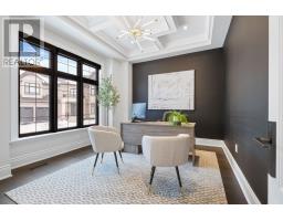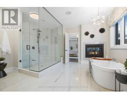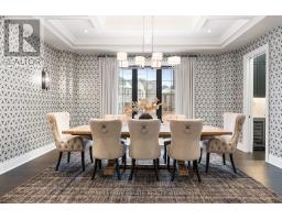 Welcome to the jewel of Glen Abbey Encore. Built by the prestigious Hallet Homes, this stunning professionally designed home offers 4,990 sq. ft. above grade. Everything in this home has been designed with purpose and style in mind. The custom entry door and statement chandelier in the foyer sets the tone for the exquisite interiors. The dining room with coffered ceilings, accent lighting, and custom wallpaper, is complemented by a butler's area featuring a bar fridge and ice maker. A chef's dream, the gourmet kitchen boasts extended cabinetry, quartz countertops, a large island, high-end Jenn-Air appliances including a 6-burner gas stove with pot filler and double wall ovens and a walk-in pantry. The great room features a stunning Dekton fireplace, coffered ceilings and double doors that open to a covered lanai with a fireplace, ceiling fan, and TV-ready setup, creating an inviting space for year-round entertaining. The home office, features coffered ceilings and tons of natural light, offering a refined and functional workspace. The primary suite is a true retreat, complete with morning bar, two-sided fireplace, and a spa-like ensuite featuring heated floors, a freestanding soaker tub, a glass-enclosed walk-in shower, and a double vanity with quartz countertops. Four additional bedrooms, each with private or adjoining ensuites and walk in closets. A thoughtfully designed second-floor laundry room includes dual washers, a dryer, custom cabinetry, folding counter, and fold-out drying racks. Beyond the interiors, the home sits on a premium oversized lot with a fully fenced backyard and a spacious side yard. The three-car garage, designed for automotive enthusiasts, features epoxy flooring, perimeter slatwall storage, an enclosed sports locker, and the capability to accommodate car lifts, along with rough-in for EV charging. Smart home upgrades include an integrated sound system, smart lighting, motorized window treatments, and custom millwork throughout. (id:61594)
