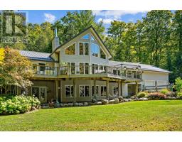 Nestled on 99 private acres just north of Grafton, this meticulously maintained forest retreat offers unparalleled privacy, natural beauty, and versatile living with a separate in-law suite. The Viceroy-style home is designed to capture the beauty of its surroundings, with floor-to-ceiling windows that flood the great room with natural light while offering breathtaking views. A cozy fireplace and wood-clad cathedral ceiling create an atmosphere of warmth and comfort. The open-concept kitchen and dining area seamlessly extend outdoors through convenient walkouts, blending indoor and outdoor living. The kitchen features a central island with raised breakfast bar, stainless steel appliances with matching hood vent, and a dedicated coffee bar. Just off the kitchen, a sunroom provides the perfect spot to enjoy quiet mornings in any weather. The main floor hosts a spacious primary suite with walkout access and private ensuite, along with a second bedroom, full bathroom, and main floor laundry. Upstairs, an airy loft is outfitted with built-in desks and daybeds, ideal for work or guests. The fully finished lower level offers versatile living and entertaining space, including a bright recreation room with stove-style fireplace, a large bedroom with ensuite and patio doors, a den/office, and a full theatre room designed for family movie nights or gatherings with friends. Step outside to enjoy multiple outdoor retreats: a spacious second-level deck for lounging or al fresco dining, a covered lower-level patio, and a fenced yard area designed for four-legged family members, complete with deck, fire pit, and lush landscaping for added privacy. The home includes an attached two-bay garage and an impressive 3,072 sq. ft. workshop featuring a finished loft in-law suite with full bathroom and private deck. Beyond the home, the property reveals a pond with observation deck and dock, forested trails, clearings, and countless spaces to explore and enjoy. (id:61594)