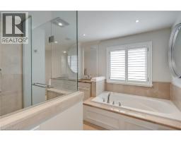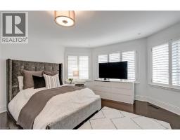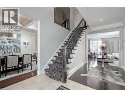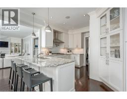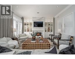 Welcome to this exceptional residence offering over 4,800 sq ft of beautifully finished living space, where timeless design meets modern comfort. The main level features hardwood flooring, crown moulding, pot lights, and built-in speakers. The elegant dining room with coffered ceiling, custom drapery, and stunning wall paper flows seamlessly into the chef-inspired eat in kitchen complete with granite countertops, marble backsplash, pot filler, five-burner gas cooktop, wall ovens, reverse osmosis water system, and a breakfast bar. The kitchen opens to a warm family room with gas fireplace, stone surround, and custom built-ins. A private office with French doors, a stylish powder room, and a functional mudroom/laundry room with garage access complete the main floor. Upstairs, hardwood continues through four spacious bedrooms. The primary suite offers a walk-in closet with built-ins and a spa-like five-piece ensuite featuring heated floors, glass shower with jets and rain head, and a soaker tub. One secondary bedroom enjoys its own ensuite, while the others share a beautifully appointed main bath. The finished lower level provides additional living space with a recreation room, gas fireplace, a three-piece bath, and loads of storage. Outside, the fully landscaped property features award-winning curb appeal, a slab stone walkway, four-car driveway, double garage with EV charger, and a private backyard oasis with pool and outdoor kitchen perfect for entertaining. This move-in ready home truly has it all. (id:61594)