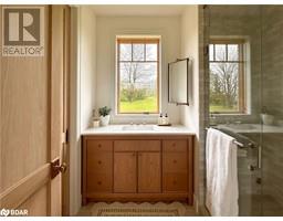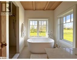 Experience the tranquility of country living at Casa Lane, a beautifully restored 115-year-old farmhouse nestled on 49 acres of rolling countryside. Designed by the @KnowltonAndCo family as a peaceful retreat, this home blends vintage charm with modern luxury, offering a slower pace for those who seek a quiet escape. Each morning, wake up to the gentle sounds of nature, enjoy coffee on the porch, and take in the expansive landscapes that surround you. Inside, Casa Lane reveals a world of craftsmanship with four spacious bedrooms and four elegantly designed bathrooms. Solid oak floors and handcrafted oak doors add warmth and character, while the luxurious primary suite offers heated floors and a spa-inspired steam shower. The custom kitchen is outfitted with high-end appliances, Perrin & Rowe faucets, and beautiful Han Stone quartz counters, complemented by Marvin windows that fill the home with natural light. A beautifully restored barn with new roof and 6 horse stalls, plus exciting potential for a indoor Pickelball court, completes the property, inviting you to dream up endless possibilities. Every aspect of this home has been thoughtfully updated with new systems, allowing you to settle in effortlessly and begin enjoying the peace of rural life from day one. Whether you're relaxing on the two-story porch, wandering the fields, or taking in sunset views from every window, Casa Lane invites you to embrace the slower pace and serene beauty of rural living. Ideally located in West Grey, just two hours northwest of Toronto and within reach of Collingwood ski hills, this timeless home is ready to welcome you. (id:61594)