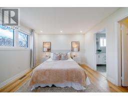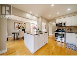 Stunningly elevated 3+1-bedroom, 4-bathroom home on a picturesque, tree-lined street in sought-after River Oaks, offering the perfect blend of nature and urban convenience. Just a 5-minute walk to scenic ravine trails along Sixteen Mile Creek, lookouts over Glen Abbey Golf Club, and access to Lions Valley Park, while remaining close to the Sixteen Mile Sports Complex, shopping, dining and major highways. This impeccably maintained and extensively updated home features an extended double driveway, beautifully landscaped gardens and a deep, private, fenced backyard with a large patio, perfect for outdoor living. Inside, enjoy a bright, open-concept layout with large windows, abundant pot lights, hardwood flooring on two levels, oak staircases and a finished lower level with wide-plank vinyl flooring. The spacious living and dining areas are ideal for entertaining, complemented by a cozy family room with a wood-burning fireplace. The renovated white kitchen boasts granite counters, a large island, stone backsplash, stainless steel appliances and a walkout to the patio. Upstairs offers three generous bedrooms and two full baths, including a luxurious primary suite with custom built-in wardrobes and a spa-like ensuite with a glass shower. The professionally finished basement adds a large rec room, flexible workspace, fourth bedroom and a full bath-perfect for guests or multi-generational living. Extensive upgrades (2019 - 2025) include smart home features, security system, newer roof, updated insulation, kitchen and bath renovations, delivering turnkey living in a prime Oakville location. (id:61594)