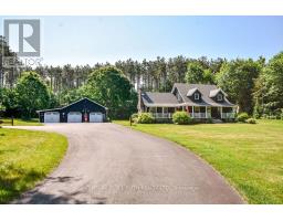 Very unique opportunity awaits! This fully finished custom built home is tucked into the woods and on a sits on a private 3.37 acres wooded lot. This long winding paved driveway leads up to the seperate shop 34ft by 44ft which is fully heated and additional huge shed for all your toys! This property also sits across the road from Orr Lake. Beautifully landscaped front and back. Tons of curb appeal when you pull up to the home. Lrg covered porch at front of home. Walk out from kitchen to a spacious deck ideal for entertaining on. A covered area for bbq and hot tubbing which is surrounded by mature trees. Take a walk through the trails at the back of the property which will lead to great spot for a fire! As you enter the home you will be captivated by the exceptional craftmanship throughout. Beautiful wide plank pine floors throughout majority of the home which provides a nice rustic feel. On main level you will find a spacious office or bedroom, open concept living room / dinning room combo, large eat-in kitchen with plenty of cabinetry plus a pantry, 2pc bath and a stunning family room with natural gas fireplace insert!!! 2nd floor offers unique roof lines which provides plenty of character, 2 large bedrooms and a massive 4 pc bathroom with soaker tub and shower. Fully finished basement if ideal for guest, extended visits from family or even a great area for the kids. Basement has a lrg 4pc bathroom with modern touches, den, and a massive rec room with wood stove. This home is truly a masterpiece in design and offers unparalleled natural beauty and privacy galore! This gem you must see to believe. Shows 10+++ (id:61594)
