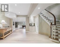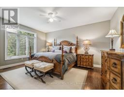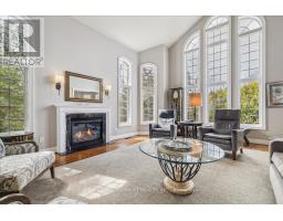 Built by the owner of Fernbrook Homes for his personal residence. TREED END UNIT RAVINE LOT - WALKOUT BASEMENT. This rare executive end-unit freehold townhome is set on a treed ravine lot - the largest on the street! Imagine waking in your main floor master to breathtaking treed views and unwinding in your walk-out basement retreat. With over 4000sq ft of total finished living space across three levels, this home is designed for those who crave both luxury and nature. Surrounded by the scenic beauty of Lions Valley Park, Sixteen Mile Creek, and Canadas Heritage walking Trail at the end of your driveway, this home offers a peaceful yet connected lifestyle in one of Oakville's most exclusive neighbourhoods - Woodhaven Estates. Inside, a grand two-storey foyer welcomes you, leading to an open and airy main level with hardwood floors, a formal open dining area, and a spacious living room with 16 foot windows bathed in natural light. The kitchen features maple cabinetry, granite countertops, chefs appliances, pantry, and breakfast area. Step out onto your deck, with a natural gas bbq connection, to enjoy a morning coffee while taking in the serene treed views. Upstairs, continues the wide plank hardwood flooring with another family room and two additional bedrooms and a four-piece bathroom, also on this level is a 17 ft x 9 ft storage room. The 1565 sq ft finished walk-out lower level with 2nd gas fireplace is a showstopper - offering a versatile entertainment space and billiards table, a three-piece bathroom and abundant storage. The walk-out leads to a stunning backyard oasis, where you'll find a stone patio, inground sprinkler system, all surrounded by lush greenery. Located just minutes from top-rated schools, Oakville Hospital, highways, and every convenience you could need. (id:61594)
