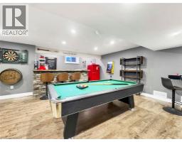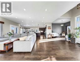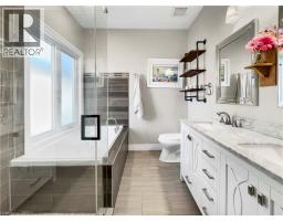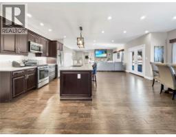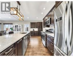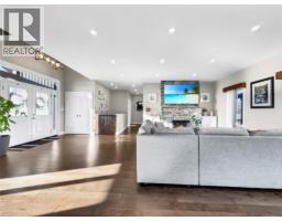 Built in 2018, this exceptional bungalow offers spacious living, premium finishes, and is move-in ready. The exterior makes a lasting impression with its meticulously cared-for landscaping, custom timber-framed porch, and eye-catching stone façade that feels straight out of a luxury magazine. Inside, the open-concept main floor is designed for both comfort and style. A striking stone fireplace anchors the living area, creating a warm and inviting space for family movie nights or quiet evenings. The kitchen is truly a chef’s and entertainer’s dream, featuring an impressive 10-foot island with quartz countertops and an integrated sink—offering plenty of prep and serving space. The island naturally becomes the centerpiece for gatherings, making it the go-to spot for hosting friends and family. If you work from home, you’ll love the bright office space just off the kitchen, offering a peaceful view of the backyard. The bedroom wing includes two generously sized secondary bedrooms and a primary suite with a walk-in closet and a spa-inspired ensuite, complete with a walk-in shower and a freestanding tub for ultimate relaxation. Downstairs, the fully finished basement nearly doubles the living space, offering two additional bedrooms and an expansive rec room with endless possibilities for play and entertainment. Adults will appreciate the separate bar and games area, complete with room for a pool table or other activities. To make life even easier, the basement includes walk-up access to the garage. (id:61594)