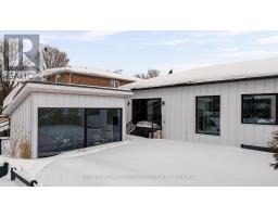 Architectural. Refined. Turn-Key. Exceptional custom-built bungalow (2021) offering over 4,300 sq ft of finished living space, complete with a private courtyard retreat, insulated Quonset hut, and summer house. Constructed with R35 ICF for superior efficiency and durability, and finished with a Standing Seam aluminum roof, aluminum siding, and aluminum windows. Striking angular rooflines, rich wood accents, and professionally landscaped grounds create remarkable curb appeal. Open-concept interior featuring 17-ft cathedral ceilings, engineered hardwood flooring, and a chef-inspired kitchen imported from Greece with porcelain countertops, waterfall island, premium KitchenAid and Monogram appliances, and a full butler's pantry. All main-level bedrooms offer private ensuites, including a spa-like primary with freestanding tub and glass shower. Fully finished lower level with 9-ft ceilings, rec room with fireplace, wet bar, office, bonus room, additional bedroom, laundry, and 4-piece bath. Gas hot water on demand. 200-amp service (home), 100-amp (garage), 60-amp (Quonset hut). Outdoor courtyard includes gas line; raised garden beds and greenhouse complete the property. A rare, design-forward offering combining craftsmanship, efficiency, and lifestyle. (id:61594)