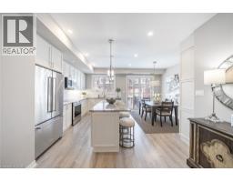 This stunning 3-bedroom, 3.5-bathroom, 3-storey townhome is ideally located just a short walk to downtown, the lake, scenic bike paths, and an abundance of parks and recreational amenities. Inside, you’ll find an inviting blend of style and function with elegant finishes throughout, including a second-floor living area designed for both everyday living and entertaining with a custom fireplace, built-in cabinetry, window shutters, and a convenient 2-piece powder room. The chef-inspired kitchen is a true highlight, featuring a large island with seating, premium stainless steel appliances, under-cabinet lighting, and a spacious dining area with built-in storage, plus direct access to a private sun-filled patio with retractable awning. Each bedroom offers the convenience of its own ensuite, with two bedrooms and laundry on the third floor and a versatile bedroom or office space on the main level. The unfinished basement includes custom wood shelving for additional storage or a potential recreation room, while the rare 2-car garage with interior access and private driveway provide ample parking. Only six years old and meticulously maintained, this home delivers low-maintenance luxury living in a quiet, welcoming community that perfectly blends indoor comfort with an active outdoor lifestyle. (id:61594)