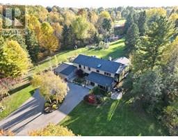 Nestled on a serene 5.65-acre property, this beautiful rural retreat offers a perfect blend of modern comfort and natural beauty. Winding trails meander through the lush forest, inviting you to explore your private paradise. The home boasts 4 spacious bedrooms, 2.5 luxurious baths, and over 4,000 square feet of elegant living space. Step into the stunning great room, where a wood-burning fireplace and a wall of windows frame breathtaking views of the surrounding majestic trees. The eat-in kitchen features quartzite countertops, stainless steel appliances, a bar area, and a large island. The cozy sunroom with a gas stove is ideal for savoring your morning coffee. The family room, warmed by a gas fireplace, is perfect for family gatherings. Gorgeous hardwood floors flow throughout the home, complementing the updated bathrooms and functional mudroom. The primary suite is a true sanctuary, with private patio access, a 6-piece ensuite bath featuring heated marble floors, a free-standing soaker tub, double vanity, glass shower, and a spacious walk-in closet with heated floors for added luxury. Outside, the property offers endless possibilities with a workshop, a chicken coop, a vegetable garden, and an orchard with fruit trees. This property provides the perfect balance of tranquility, comfort, and modern amenities, making it an idyllic countryside escape. (id:61594)