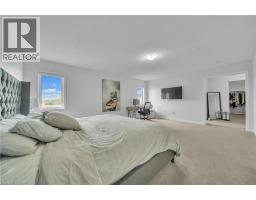 Welcome to this beautifully upgraded, less than 5-year old detached home in family-friendly Binbrook. Offering 3,400+ sq ft above grade, this 4-bed, 3.5-bath residence blends space, function, and style. The main floor features a private office for remote work, a bright open-concept living/dining area, and a chef-inspired kitchen with quartz counters, an oversized island, extended cabinetry, walk-in pantry, and stainless steel appliances. Upstairs, you will find generously sized 4 bedrooms, including a spacious primary with walk-in closet and spa-style ensuite. Thoughtful finishes include hardwood flooring on the main level, upgraded trim/doors, modern light fixtures, and custom window coverings. The pie-shaped lot delivers an expansive backyard ideal for play and entertaining. A double-car garage with inside entry and a wide driveway add everyday convenience. Close to parks, schools, trails, shopping, and everyday amenities with easy access to major routes. A turnkey option in a growing community. Move in and enjoy! (id:61594)