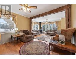 Welcome to your beautiful country retreat - only minutes to the charming town of Almonte ! This bright and sun filled large home is nestled on a gorgeous, fully treed and extensively landscaped 1.7 acres of peace and tranquility. With 3 bedrooms and a well designed and roomy floor plan, this home is ready for the new owners to sit back, relax and enjoy country living at its best. Entering the property, the home has presence and character amidst such a scenic backdrop. The main level features gleaming hardwood and a good sized living room with large feature stone fireplace to anchor the room. Adjoining dining room is ideally appointed with large corner windows and is ready for entertaining. Bright eat In kitchen has plenty of cupboard and counter space as the heart of the home. The spacious family room with feature fireplace can also serve as an office, library and retreat - with stunning views of the amazing backyard from the oversized windows. This level features the main bath, handy laundry room and good sized primary bedroom with ensuite. Second level had 2 good sized bedrooms and large attic storage area. The lower level is presently a large workshop area, cold storage room with a highly desirable walk out perhaps for a future In Law Suite - lot's of opportunity with the space. Outside, step into paradise - enjoy relaxing on one of your two deck areas for your morning coffee, later enjoy hosting a BBQ in your screened in porch surveying the beautiful grounds. The property boasts mature perennial landscaping and beautiful trees, even a creek running through it with its own bridge. Several outbuildings including an oversized barn and garage are perfect for all your storage and creative ideas. Homes like this one don't come on the market very often - the sellers have lived in the home for almost 50 years! This is a wonderful opportunity to embrace nature and enjoy peaceful lifestyle in an impressive country home. (id:61594)