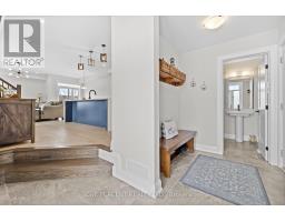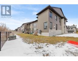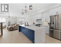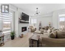 This Urbandale Da Vinci end unit in Kemptville's The Creek community checks the boxes that are genuinely hard to find together: a premium corner lot with NO REAR NEIGHBOURS, a double garage, and over 2,066 sq. ft. of stylish living space where the finishes do the talking. The main floor opens with a spacious foyer and sitting area, beautiful hardwood, and an open-concept layout that flows from the kitchen through to the backyard. The kitchen is the centrepiece, with quartz countertops, a tile backsplash, stainless steel appliances including a gas stove, and a large waterfall island with counter seating that anchors the space for both cooking and conversation. Built-in speakers in the living area and a gas fireplace set the tone for a space that's as comfortable for a quiet evening as it is for entertaining. Patio doors to the backyard off the dining room complete the space. Upstairs, no detail was spared, as hardwood continues throughout. The primary bedroom features a walk-in closet and a five-piece ensuite with soaker tub, a glass shower with designer tile, double sinks, and quartz counters. Two more bedrooms, one with a walk-in closet, share a full bath with quartz counters. A loft area works naturally as a home office or flex space, and laundry is conveniently located on this level. The basement adds comfortable living space with high ceilings, while offering lots of storage. For families ready to move into something special, this is the home that delivers on every front, in a vibrant community minutes from shopping, restaurants, walking trails, and the Kemptville Creek, with easy access to Hwy 416 for the Ottawa commute. Explore the virtual tour and book your private showing today. (id:61594)