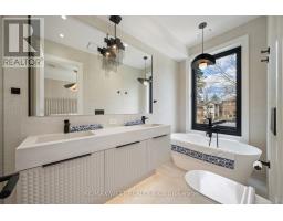 Welcome to 238 Melrose - a newly built luxury residence set on an extra-deep 25 x 150 ft lot in the prestigious Lawrence Park North community. This exceptional home offers a seamless blend of modern design, high-end finishes, and thoughtful craftsmanship throughout.The interior showcases elegant painted MDF millwork and custom vanities along with curb less showers, complemented by stunning Taj Mahal natural stone surfaces and a striking gas fireplace feature wall. Floor-to-ceiling tile work enhances all washrooms, while the fully finished lower level is designed as a private wellness retreat, complete with a steam room, gym , and a 3-piece ensuite (gym can be used as a office or additional bedroom).Designed for both comfort and sophistication, the home features rich wood paneling, motorized blinds, customized window coverings, and illuminated open riser stairs with lights. The chef-inspired kitchen is equipped with premium Thermador appliances, perfect for everyday living and upscale entertaining.Smart home convenience is fully integrated with a Control4 system, along with built-in speakers on the main floor and in the primary bedroom, and a comprehensive security camera system surrounding the property.The exterior is equally impressive, featuring a durable epoxy-finished backyard and garage, a full glass garage door, and a grand solid mahogany entry door. Wrapped in timeless Windham brick and precast detailing, and complemented by sleek aluminum windows and doors, the home delivers outstanding curb appeal. A fiberglass fence provided both privacy and style. Enjoy outdoor living at its finest with a private backyard oasis, complete with a hot tub-perfect for relaxing or entertaining under the evening sky. This home comes with 2 car chargers.This turnkey luxury home offers an unparalleled lifestyle in one of the city's most sought-after neighbourhoods.Please note the living room and basement photos are virtually staged. (id:61594)