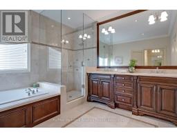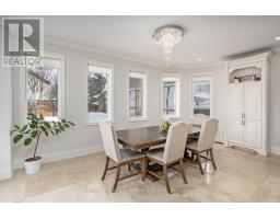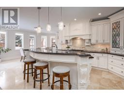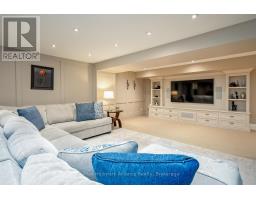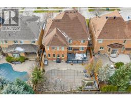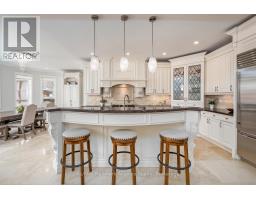 Welcome to 2381 Gamble, a move-in-ready executive home located in the heart of prestigious Joshua Creek, within walking distance to Joshua Creek Public School, trails, parks, and playgrounds, and close to everyday amenities. Offering approximately 3,738 sq ft plus a finished basement, this impressive 4 bedroom, 4.5 bathroom residence features extensive high-quality renovations throughout. A covered front porch leads to a grand foyer with heated porcelain flooring, opening to an elegant main level with Italian porcelain floors, crown moulding, pot lights, and crystal light fixtures. The formal living room and private den/office both feature heated floors with separate temperature controls. The spacious dining room flows into the inviting family room with gas fireplace and included frameless TV. The gourmet kitchen is a standout, featuring travertine flooring, a large centre island with breakfast bar, granite countertops, stone backsplash, high-end stainless steel appliances, and custom cabinetry with soft-close hinges, glass display cabinets, and undermount lighting. A bright breakfast area with five large windows offers a walkout to the patio. The expansive primary suite includes his and hers walk-in closets, a luxurious 5-piece ensuite with marble floors, jacuzzi tub, double vanity, glass shower, and a separate sitting area. The second bedroom features a private 4-piece ensuite, while the third and fourth bedrooms share a 5-piece semi-ensuite. The finished basement offers a 3-piece bath with heated marble floors, custom walnut vanity, entertainment and recreation areas with gas fireplace, built-in cabinetry, speaker system, custom wet bar with wine fridge, and bonus servery. The backyard retreat features an inground saltwater pool, extended patio, professional landscaping with irrigation and lighting, custom cedar shed/pool house, and retractable awning. A rare opportunity in one of Oakville's most sought-after neighbourhoods. (id:61594)