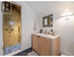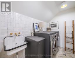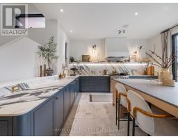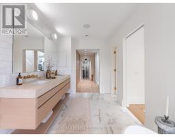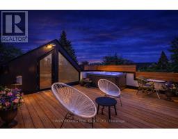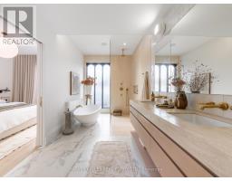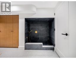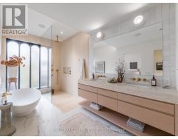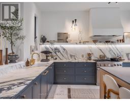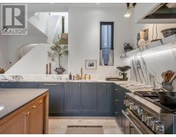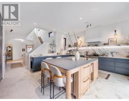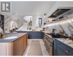 Experience a truly exceptional, fully rebuilt residence in the heart of the Annex, where timeless character meets uncompromising modern design. Completed in July 2023, this home retains only its original façade, with every other element thoughtfully reimagined to deliver over 3,400 square feet of refined living space across four levels. Inside, the home offers 3 spacious bedrooms on the second level, including a stunning principal retreat with a luxurious 5-piece ensuite, while a fully self-contained lower-level suite provides a fourth bedroom or ideal in-law accommodation with its own kitchen, laundry, and private walkout. In total, five beautifully appointed washrooms serve the home, each finished with elevated materials and meticulous attention to detail. Designed by Lyndsay Jacobs Interiors and featured in House & Home and Timeless Living, the interiors showcase custom millwork, restored 1878 stained glass, white oak herringbone floors, and hand-selected marble and limestone finishes imported from Greece. A dramatic three-storey staircase, illuminated by skylights, fills the home with natural light, while curved architectural lines and premium fixtures from Waterworks, Kallista, and Forbes & Lomax create a cohesive, elevated aesthetic throughout. The kitchen is both functional and striking, anchored by custom cabinetry, a 17-foot floating Nero Borghini marble shelf, premium Thermador appliances, and seamless indoor-outdoor flow through a 10-foot bifold door. The living spaces extend outdoors to a beautifully landscaped yard designed for entertaining, as well as a rooftop terrace complete with a saltwater hot tub and gas hookup-offering breathtaking treetop and CN Tower views. The lower level is equally impressive, featuring a custom media room with integrated Bowers & Wilkins surround sound, a 400-bottle climate-controlled wine cellar, and thoughtful additions such as a dog wash station and extensive built-in storage. (id:61594)