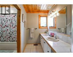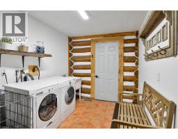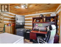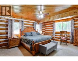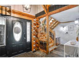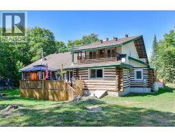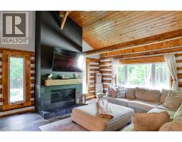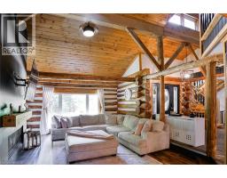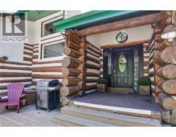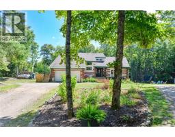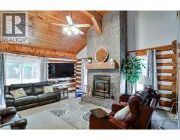 This extraordinary property provides a unique opportunity for multi-generational living within a cozy, log home setting. The finished living spaces of the home were extensively updated in 2023. The layout of the home is well thought out, maximizing the peaceful, cottage country views of the surrounding forest from both the primary and in-law suites. The in-law suite alone offers over 1200 sqft. of finished living space all on one floor. It has a large master bedroom with an ensuite 4pc bathroom, large walk-in closet, and its own laundry. The open concept kitchen and living room area features a signature fireplace and large windows overlooking a private deck. Ramp access to the in-law suite make this very well suited for the seniors in your family. The primary unit’s living spaces are spread out over two floors. The front foyer overlooks the living room with vaulted ceiling, fireplace, and large windows with plenty of natural light. Home chefs will love the substantial new kitchen and separate dining room. The 2nd floor has 3 sizeable bedrooms, a guest room, and a centrally located multi-purpose room well suited for a kids play area, games room, or additional bedroom. The nearly 2700 sqft. basement is partially finished with ample space for work room, rec room, storage, theatre, bedrooms, etc. As spectacular as the house is, what truly makes this property special is the land. The home is surrounded by a sprawling mixed species forest with trails. There are outbuildings, a covered woodshed, and 2 premium 8'x 20' Shelter Logic Garages provided ample additional storage for all your needs! A road splits off the main drive and leads to a large clearing at the back of the property, suitable for camping or trailer storage. Hydro has already been run to the cleared area which offers many possibilities! (id:61594)