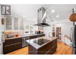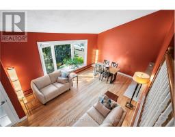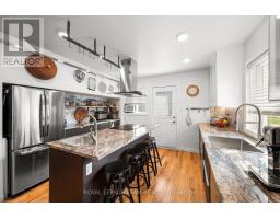 Stop the Car! UNIQUE back split floor plan... Don't be fooled, it is larger than it looks, charming home enjoys many upgrades and has space for a large family. Let's start with the living/dining great room with vaulted ceiling and gas fireplace (2022), then onto the updated kitchen (2016) with breakfast bar island (6'9"x3'), loads of storage, granite counters, bar/beverage fridge, cook top, wall oven, dishwasher ('25) pot lights etc... the upper level has 3 bedrooms and an updated 4pc bath (2020), note hardwood flooring on both these levels. Head down to the "in between" level, still above grade with a 4th bedroom, 3pc bath (2024), a huge recreation room with wood burning fireplace and a walk out to the deck and generous yard. Lowest level boasts another large multipurpose room, currently an office, then behind another door is tons of storage and the laundry room. Off the kitchen is a small deck that takes you to another private patio with interlocking pavers. 3 Sheds complete this picture. Oh, did we mention the early to ripen apple tree out front?! Boiler furnace & owned hot water heater (2019) Shingles (2016). Time to get packing! (id:61594)