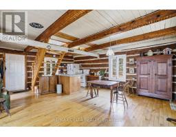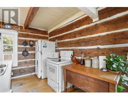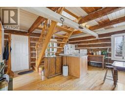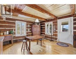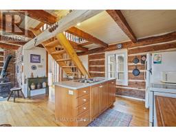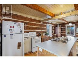 Re-discover simplicity in this circa-1895 rural log home. Connect with nature and the change of the seasons in this private getaway. On cold days, cozy up to a crackling fire in your wood-burning stove. Restored interior log walls, newer central staircase to the second floor with an open loft space plus one private bedroom. Kitchen, dining area and living room. No rear or side neighbours and the South Nation River flows past on one side of this one-acre-plus property. This is a very private location, at the end of a dead-end road due to closure of the Chartrand Bridge in 2020. Property also has a shed and wood shed. Electric furnace in basement. Basement height: 5 feet. Main floor bath contains toilet, antique tub, and washer. Dug well and natural spring on the property. Included: Refrigerator, Stove, Washer, HWT, Wood in Woodshed and: all the peace and quiet you can imagine. 24 hours irrevocable on all offers. (id:61594)