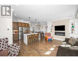 Welcome to this stunning end-unit townhouse offering over 2,330 sq. ft. of beautifully finished living space in one of Burlington's most desirable locations just minutes from downtown, the lakefront, shops, and restaurants.The main level features an open-concept layout with 9-ft ceilings and elegant finishes throughout. The gourmet kitchen is a showstopper with custom cabinetry, a large island with a waterfall quartz countertop, and premium KitchenAid stainless steel appliances, including a 5-burner gas range. The spacious living area is highlighted by a gas fireplace set in a striking stone accent wall with custom built-ins, creating the perfect setting for relaxation and entertaining. Upstairs, you'll find three generous bedrooms, a convenient second-floor laundry, and a stylish 4-piece main bath. The primary suite offers a walk-in closet and a luxurious ensuite with modern fixtures.The fully finished lower level adds even more living space, featuring a recreation room with wood-look flooring, LED pot lights, frosted glass double doors, and a 3-piece bath with heated floors. Smart home features include a Lutron lighting system and Google Nest controls for effortless comfort and convenience. Enjoy the benefits of a prime Burlington location. Enjoy the buzz of downtown Burlington or recharge in one of the many parks nearby. Situated in a top-rated school district and close to GO transit, and major highways, this home is perfect for commuters, downsizers and families alike. (id:61594)