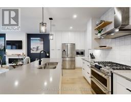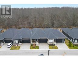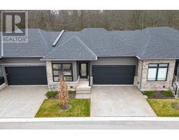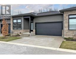 Enjoy luxury living and architectural elegance in this extensively upgraded double car garage bungalow townhome which backs on to the wooded area and located steps from world class 'Legends on the Niagara' golf course in Niagara's premier contemporary community. Luxury finishes throughout the house including $125K spent in quality upgrades and enjoy carefree living in this rare enclave of upscale homes. Features include 9' ceilings on main level, 8' tall interior doors, gorgeous gourmet kitchen with stainless steel appliances, extended center island with Quartz countertops and waterfall edge, laundry room with custom built-ins located conveniently off of the kitchen. Modern open concept great room with electric fireplace and floating wood mantle, large windows, sliding glass door leading to private, covered 20' x 10' deck finished with glass railing and gorgeous views of wooded area. Backyard also features a concrete patio and natural gas hookup for BBQ. Serene primary bedroom with large walk-in closet and spa-inspired 5PC ensuite, complete with glass and tile shower, soaker tub, double vanity and Quartz counters. West facing 2nd bedroom with large windows, 4PC guest bath and interior door to double car garage with rough-in for future electric vehicle completes the main level. Finished basement with upgraded carpet and under pad provides additional 660 Sq Ft of luxurious living space including a bedroom, 3PC ensuite bathroom with heated floors & custom wood shelves, a huge rec room with large window and exercise area. Unfinished mechanical room is 307 Sq Ft in size. Home is wired with audio system in all the rooms, outside video cameras installed and comes with Sony surround sound system, Sonos Amps, HIKVISION for video surveillance along with the 90" TV in the basement rec room. Hunter Douglas blinds throughout with remotes. Upgraded lighting throughout. 200 AMP Electrical Panel. Energy Star certified and located close to golf, boating, watersports and fishing. (id:61594)