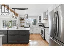 This is the one families wait for. Set on a private 1/2 acre estate lot in one of Carlisle's most established neighbourhoods, 24 Bannisdale Way offers the kind of homey warmth and substance that simply can't be replicated in newer builds.Thoughtfully renovated - yet never stripped of its soul - this two-storey home blends beautiful country charm with meaningful modern updates. Antique wide-board pine floors, exposed wood beams, and striking brickwork create character and comfort in equal measure. Every room feels intentional - spaces designed with purpose, allowing for quiet privacy when needed and natural gathering when it matters.The fully renovated 2025 kitchen is the heart of the home, finished with quartz countertops and a generous island that opens seamlessly to the dining area - inviting conversation & connection. Two separate main-floor family rooms offer flexibility for growing families, including one anchored by a full brick fireplace with brand new instert. A dedicated home office and powder room complete the main level. Upstairs, four spacious bedrooms provide room to grow, including a primary suite with a private 3-piece ensuite and a well-appointed 5-piece family bath.The finished lower level offers a large recreation room, 3-piece bathroom, and laundry - space for movie nights, hobbies, and everything in between. Big-ticket updates have already been taken care of, including all windows and doors, garage doors, furnace (approx. 4 years old), and a Generac generator. Outdoors, the backyard feels like a private retreat - mature trees towering overhead, established garden beds, and a beautiful pond creating a peaceful, storybook setting. The septic system has been ideally positioned to the side and rear of the property, leaving the centre of the yard perfectly suited for a future in-ground pool - a blank canvas for your own backyard paradise. A home with character. A home with room to grow. A home where memories are waiting to be made. (id:61594)