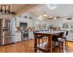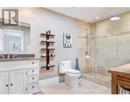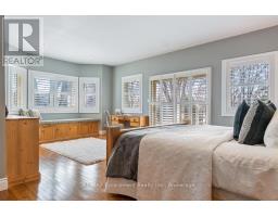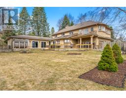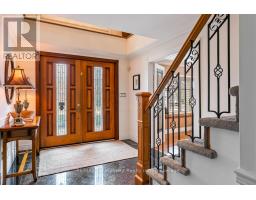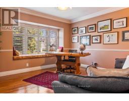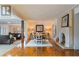 Warm, serene, and inviting, this English farmhouse-inspired residence sits on an expansive 0.42-acre corner lot, offering a rare blend of character, privacy, and natural beauty. The impressive frontage and side yard create a true estate-like presence, with generous outdoor space on all sides of the home. Inside, a double-height foyer, gleaming hardwood floors, and an airy sense of volume set the tone for the rest of the residence. To one side, an intimate living room provides a refined setting for quiet conversation or reading, while on the other, a substantial main-floor study with rich architectural details is ideal as a home office, library, or music room. Beyond these formal spaces, the home opens into a relaxed, open-concept layout designed for modern living and effortless entertaining. A sunken family room anchors the informal wing and flows into a welcoming dining room highlighted by a wood-burning fireplace that adds warmth and ambiance to gatherings with family and friends. At the heart of the home, the kitchen is bathed in natural light from overhead skylights. Stainless steel appliances, sleek countertops, generous cabinetry, and warm accents create a space that is both highly functional and inviting. Thoughtfully designed with cozy elegance, the home offers four bedrooms, three full bathrooms, and two half bathrooms. Large windows frame views of manicured corner-lot gardens and offer peek-a-boo glimpses of the lake, giving the property a tranquil, retreat-like feel. Outside, beautifully landscaped grounds wrap the home with multiple outdoor zones, including a hot tub, Scandinavian-style sauna, and enclosed swimming pool, creating a resort-like experience in your own backyard. This exceptional property offers convenient access to major highways, lakeside walking trails, and a highly regarded school catchment area, delivering an elevated lifestyle in one of Oakville's most sought-after neighbourhoods. (id:61594)