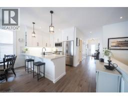 Welcome to this beautifully maintained 2+1 bedroom, 3 bathroom bungalow in the charming small town of Jarvis- voted as Canada's Kindest Community and just a short drive to the beaches and amenities of Port Dover. Nestled within a quiet, welcoming neighbourhood that still fosters a strong sense of community, this common elements condominium offers a thoughtful layout, modern finishes, and comfortable one-floor living with a fully finished basement-ideal for downsizers, professionals, or those seeking low-maintenance living. The main floor boasts engineered oak hardwood in the principal rooms, a versatile front bedroom/den with double doors, and a 4-piece guest bathroom with tiled floors and tub/shower combo. The bright kitchen offers white shaker cabinetry, quartz countertops, subway tile backsplash, peninsula, and stainless steel Frigidaire appliances. The open living/dining area includes a natural gas fireplace and patio doors that lead out to the backyard. The primary suite features a walk-in closet and a 3-piece glass shower ensuite, plus convenient main-floor laundry with garage access. The fully renovated (2022) basement provides a spacious recreation room with shiplap accent walls, sconce lighting, and an electric fireplace-ideal for relaxing or entertaining-along with a large bedroom featuring a proper egress window and generous closet, plus ensuite privilege to a stylish 3-piece bathroom with glass shower. Step outside to the covered backyard patio, a perfect space to enjoy your morning coffee, host summer dinners, or unwind in any season. Thoughtfully designed, move-in ready, and located in a welcoming community that offers small-town charm with nearby lakeside access, this home delivers comfort, style, and easy living-an excellent opportunity in Jarvis. (id:61594)