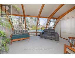 This meticulously maintained bungalow on Densgrove offers a rare, park-front sanctuary in Scarborough. Positioned directly across from the lush expanse of Densgrove Park, the property features breathtaking, unobstructed views and the luxury of no front-yard neighbors. Sitting on an impressive 50' x 114' deep lot, this residence is a private retreat designed for peace and privacy.From the dedicated foyer, the pride of ownership is unmistakable. The layout prioritizes light, centered around an oversized, sun-filled eat-in kitchen. Adjacent, the expansive living and dining areas provide a sophisticated footprint for entertaining, with pristine original hardwood floors waiting beneath the broadloom.The home features three generously sized bedrooms, highlighted by a spectacular, sundrenched solarium with rustic wood beams and floor-to-ceiling windows. This space offers panoramic backyard views, perfect for a morning coffee or home office.The living space extends into a finished basement, doubling the home's footprint with a large recreation room, classic fireplace, and a massive laundry suite with potential for a fourth bedroom. Outside, an interlocked driveway leads to a deep backyard oasis with a deck and metal shed. With a pre-listing home inspection available, this park-side gem is ready for its next chapter. (id:61594)