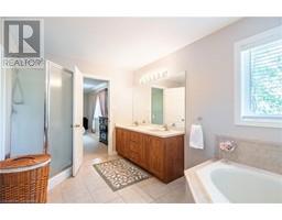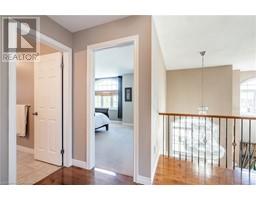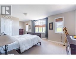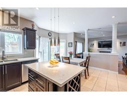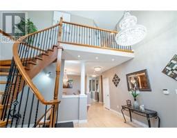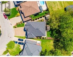 Your dream home awaits at this custom-built 2,655 square foot masterpiece nestled on a generous pie shaped lot. Enter the home to discover an abundance of natural light, with elegant chandeliers and pot lights that illuminate every corner of the home. The front entrance boasts a stunning 17-foot open vaulted ceiling, creating an airy and grand atmosphere perfect for both relaxed living and elevated entertaining. The heart of the home is a beautiful maple kitchen with quartz countertops, island, and extended pantry open to the dinette and family room, featuring a gas fireplace, built in surround sound speakers and wall-to-wall windows that invite the beauty of nature indoors, providing a serene backdrop as you cook and gather with loved ones. Head up the gorgeous open, wooden step, spiral staircase, to retreat to the luxurious primary suite complete with a lavish five-piece ensuite and 12 ft x 5 ft walk-in closet. Three additional well-appointed bedrooms and a spacious five-piece bath complete the second floor, ensuring ample space and privacy for family members or guests. The open unspoiled lookout basement offers high ceilings, four large windows, a three piece rough-in, a perfect canvas for your personal touch. Outside, your private backyard oasis awaits with stunning aggregate and stone landscaping around the whole house, lush gardens, an 8ft wooden fence, a welcoming pergola, and a charming campfire spot perfect for evenings under the stars. The 21 ft x 21 ft double car garage and 6 car driveway complete every wish list. This home combines modern comforts with thoughtful design, ensuring a lifestyle that celebrates both indoor luxury and outdoor living. This is your chance to call this exquisite property your own. (id:61594)