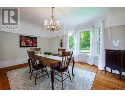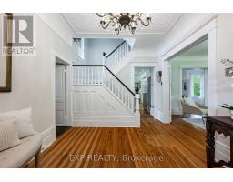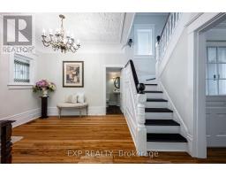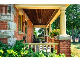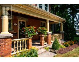 Welcome to the esteemed 24 Faulkner, where history lives on in pristine perfection. Built in 1908 by John C. Reid, Dufferin County's first clerk, this Edwardian gem is a rare testament to Orangeville's past, gracefully preserved & lovingly updated for modern life. The stately facade of local red brick, stone accents, symmetrical lines, broad roofline & cedar shingled gables reflect timeless architecture. Imagine the conversations held over the last century on the covered front porch, w original features including stained glass window. Inside, floor-to-ceiling elegance sets this home apart. Soaring 9ft coved ceilings feature unique patterns in each room. 12" baseboards ground the space in historical craftsmanship while adding a sense of grandeur. The family & dining rooms are divided by an original pocket door, allowing for both flow and intimacy depending on the occasion. In the dining rm, a striking, original bay window offers views of the beautifully landscaped side yard. The heart of the home, a modern kitchen with center island, intentionally designed cupboard storage & beautiful quartz counters, leads out to a covered back porch, perfect for enjoying summer suppers alfresco. Hardwood floors grace much of the home, with softwood cleverly tucked under tables & rugs, an original builder's trick to balance beauty with budget. The 2nd floor hosts four generous bedrooms, with soaring ceilings, large closets & big, beautiful windows. A classic claw-foot tub & walk-in shower complete the luxurious main bath. Ascend to the third-floor primary suite, a tranquil retreat with spa-like ensuite, soaker tub, double vanity, walk-in shower, and your dream walk in closet. The rare finished basement adds yet another living space to this 2395 sq ft home. This property neighbours only the quiet grounds of ODSS, coming alive for just a few moments at bell time. With historical records from the original $1,700 build cost still intact, this home is not only a treasure, it's a legacy. (id:61594)