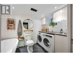 Welcome to this charming 2-bedroom, 2-bathroom home offering a warm, spacious feel with a large living room, complete with a wood-burning fireplace perfect for cozy winter evenings, and a dining area that comfortably seats eight, making it ideal for entertaining. The primary bedroom is generously sized, easily fitting a king bed and offering a sweet office nook, with a large window that fills the space with natural light. The second bedroom is also spacious, with a larger-than-average closet, making it perfect for guests, kids, or a home office setup. Step outside to a quaint backyard perfect for summer evenings and weekend gatherings. The home has been thoughtfully renovated and well maintained, with a fully updated kitchen refreshed in 2025 featuring new counter tops, cabinet fronts, appliances, and custom wall storage. The finished basement adds valuable living space and includes a beautifully designed bathroom with a claw foot tub and heated slate floors. Major improvements include a new flat roof, updated plumbing and sewer line, interior and exterior waterproofing, all new windows, and a new back deck - offering real peace of mind for the next owner. Stair access to attic, potential for 3rd floor useable space. All of this is just steps from the Glen Stewart Ravine and the shops and restaurants along Kingston Road, a two-minute walk to the new YMCA, and close to transit, parks, and great schools. (id:61594)