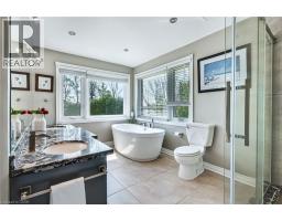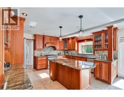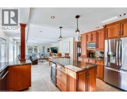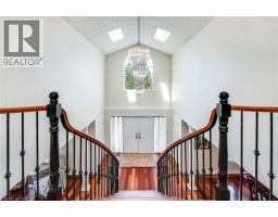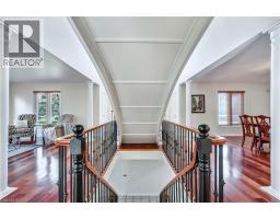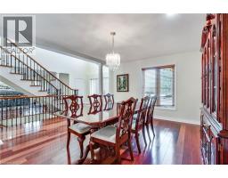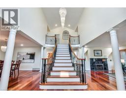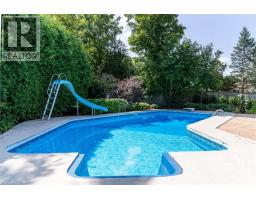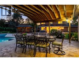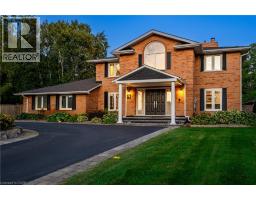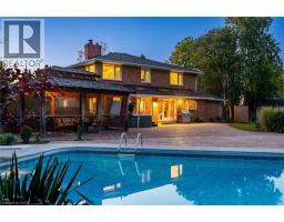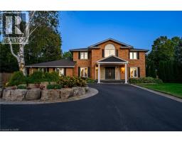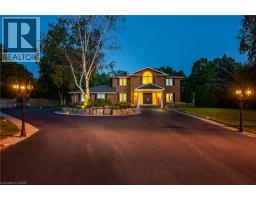 Situated on a quiet, beautifully manicured 0.99-acre lot in one of the most exclusive enclaves in the area, this impressive two-storey brick estate immediately captures attention with its elegant curb appeal, circular driveway, and landscaped centrepiece. This home has it all, offering four bedrooms, four bathrooms and over 4000 square feet of living space. No rear neighbours, an inground pool, hot tub, workshop & gazebo with a natural gas fireplace outside. The backyard is flat, unobstructed and surrounded by trees. Plenty of useable space for entertaining, family games/events and a huge ice rink. Breathtaking foyer illuminated by cascades of natural light and a stunning centre staircase. Exquisite Brazilian hardwood flooring flows seamlessly through the formal dining and entertainment spaces, where a natural gas fireplace adds a warm, ambiance ideal for both grand entertaining and intimate gatherings. The custom kitchen is a masterpiece of craftsmanship, featuring cherry maple oak soft-close cabinetry, under-cabinet lighting, heated floors, granite countertops, skylights, and a toe-kick central vacuum for effortless living. The step-down living room features large windows overlooking the private back yard, pot lights through-out and gleaming hardwood floors. The expansive primary suite impresses with two walk-in closets, custom built-in wall-to wall cabinetry, and an elegant ensuite featuring dual vanities and a walk-in shower. The fully finished basement features a spacious recreation room, a bathroom, a private office, an oversized storage room, and a separate walk-up staircase leading directly to the garage. Nestled in a prime location just five minutes from Waterdown, this location offers unrivaled access to excellent schools, parks, trails, golf courses, and fitness centers, a rare setting where every lifestyle amenity is within easy reach, yet the surroundings remain serene and exclusive. (id:61594)