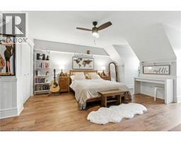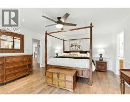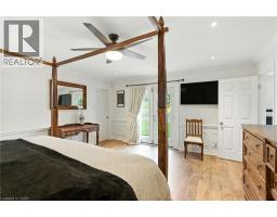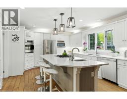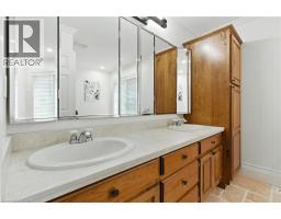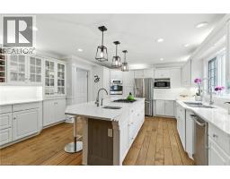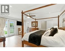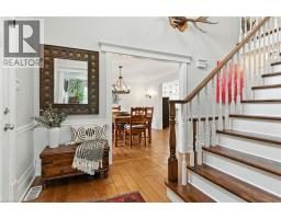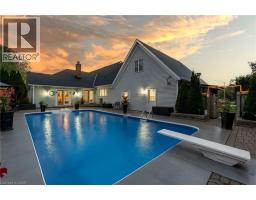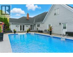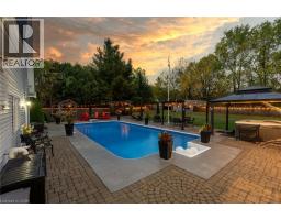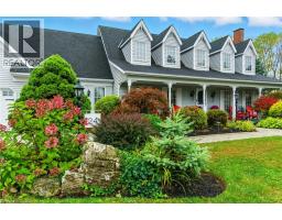 Located on a quiet, sought-after street in Carlisle, this 3,062 square foot Cape Cod-style home plus finished basement sits on a large pie-shaped lot and offers timeless charm with modern updates. Inside, hardwood floors, crown moulding and wainscotting add classic character. The main level features a formal living room, dining room and a spacious white kitchen with beautiful quartz counters, an island with sink and a gas cooktop overlooking a cozy sitting area with a two-way gas fireplace. A sunken family room with vaulted ceiling offers the perfect space to relax. The main floor also includes a primary bedroom with walk-in closet with custom organizers and a luxurious five-piece ensuite + a second bedroom perfect for a nursery or office. Upstairs, two large bedrooms with dormer windows provide great space for family or guests. The finished basement includes a fifth bedroom with ensuite privileges to a four-piece bathroom, a rec room with gas fireplace, a bar, pool table area, flex space for an office, gym or craft room, workshop and stairs up to the oversized heated double garage with loft storage. In the fully fenced backyard, you can relax and enjoy the ultimate in privacy as there are no rear neighbours! You can also enjoy a patio, heated inground pool, hot tub (2018), gazebo and shed along with sitting areas and lots of green space perfect for an ice rink, baseball playing, soccer or your gardening dreams. Additional highlights include main floor laundry, furnace and A/C (2023) and an ideal layout for families and entertaining. Don’t be TOO LATE*! *REG TM. RSA. (id:61594)