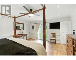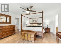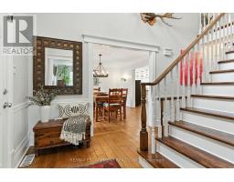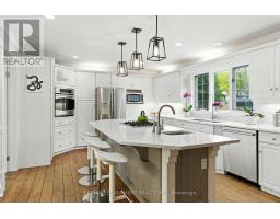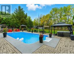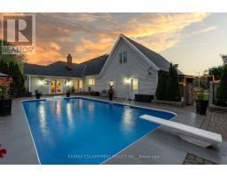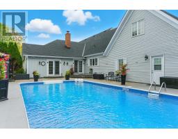 Located on a quiet, sought-after street in Carlisle, this 3,062 square foot Cape Cod-style home plus finished basement sits on a large pie-shaped lot and offers timeless charm with modern updates. Inside, hardwood floors, crown moulding and wainscotting add classic character. The main level features a formal living room, dining room and a spacious white kitchen with beautiful quartz counters, an island with sink and a gas cooktop overlooking a cozy sitting area with a two-way gas fireplace. A sunken family room with vaulted ceiling offers the perfect space to relax. The main floor also includes a primary bedroom with walk-in closet with custom organizers and a luxurious five-piece ensuite + a second bedroom perfect for a nursery or office. Upstairs, two large bedrooms with dormer windows provide great space for family or guests. The finished basement includes a fifth bedroom with ensuite privileges to a four-piece bathroom, a rec room with gas fireplace, a bar, pool table area, flex space for an office, gym or craft room, workshop and stairs up to the oversized heated double garage with loft storage. In the fully fenced backyard, you can relax and enjoy the ultimate in privacy as there are no rear neighbours! You can also enjoy a patio, heated inground pool, hot tub (2018), gazebo and shed along with sitting areas and lots of green space perfect for an ice rink, baseball playing, soccer or your gardening dreams. Additional highlights include main floor laundry, furnace and A/C (2023) and an ideal layout for families and entertaining. RSA. (id:61594)