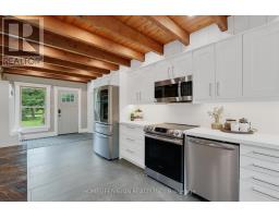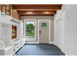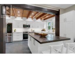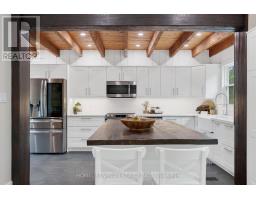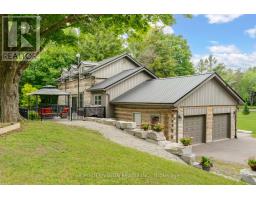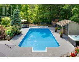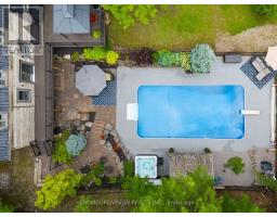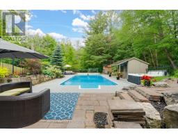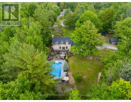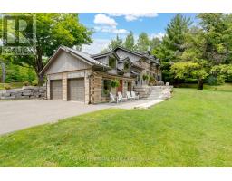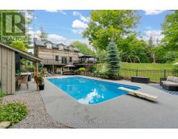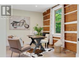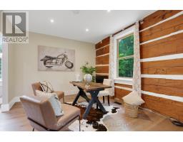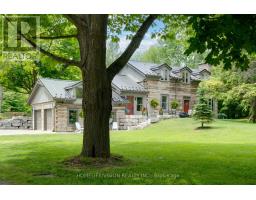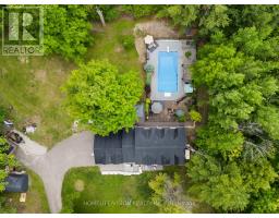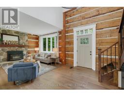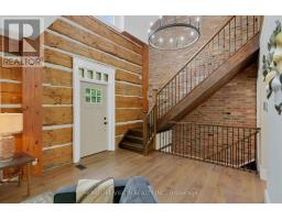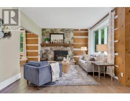 Spectacular Hewn Log Home with 3+1 bedrooms and 4 bathrooms on 2.27 acres on coveted street! This serene, expertly landscaped property boasts a fully fenced lot surrounded by mature growth trees for the utmost privacy. Entertainers dream backyard oasis with in-ground saltwater pool, hot tub and multiples patios! Meticulously renovated with modern upgrades inside and out, no expense has been spared! Enjoy the spacious kitchen with quartz countertops and large reclaimed walnut island complimented by newer appliances, living room with soaring cathedral ceilings and stone wood burning fireplace, large office, dining room with beautiful backyard views and walkout to back deck, engineered hardwood throughout the main floor. The principal bedroom boasts a vaulted ceiling and ensuite with heated floors. Upstairs bedrooms have ample storage! Bright and cheery finished basement with walkout and gorgeous views of the backyard and pool, powder room, bedroom, and ample storage with luxury vinyl plank floor throughout. Exuding character with approx. 120 year old beams and brick feature wall. Spacious two car garage and large private laneway! Hardwired security cameras and industrial LED floodlights. Plenty of outdoor storage with two Mennonite built sheds with steel roofs and a coverall. Backup generator that runs entire house. Some windows and doors replaced in 2024. Amazing property to live at and play on! Don't miss it! Upgrades include: Metal roof and Pool Heater (2017), Upstairs Laminate Floor (2018), Composite Deck (2019), Front Walkway (2020), Kitchen and Landscaping (2021), Engineered Hardwood on Main Floor, Fencing, Basement Luxury Vinyl Plank, Pool Liner, Hot Tub (2022), Master ensuite and upstairs bathroom, Pool Surround, Laundry Room, Stair treads restained, spindles replaced and banister replaced (2023), Water Filtration System, Main Floor Bathroom (2024). (id:61594)