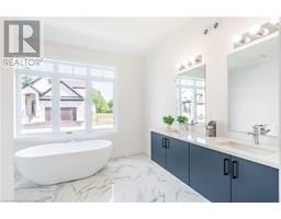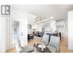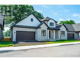 $312 MonthlyBUILDER MODEL HOME, never-before-lived-in Energy Star Certified bungaloft with full 7 Year Tarion warrantee nestled in the prestigious Lions Park Estates community of Brantford. Perfectly situated on a quiet, private cul-de-sac, this all-brick executive residence offers an elevated blend of sophistication and comfort. Step inside to find soaring ceilings, wide-plank engineered hardwood flooring, and sunlit open-concept living spaces. The chef-inspired kitchen is a true showpiece, featuring pristine white cabinetry, quartz countertops, designer hardware, an undermount sink, breakfast bar, and a walk-in pantry. The main floor is thoughtfully designed with a serene primary suite offering a spacious walk-in closet and a spa-like 5-piece ensuite with glass shower, soaker tub, and dual vanities. A powder room, laundry area, and a versatile office/den with garage access complete the main level. The loft features two oversized bedrooms and a sleek 4-piece bath. The unspoiled lower level with high ceilings awaits your custom touch. Enjoy seamless indoor-outdoor living with a covered wooden deck backing onto scenic Lions Park. FIRST 12 MONTHS maintenance fee included which includes Snow removal and Lawn care! Steps to Gilkison Trail, great schools, community centre, rinks, shopping, Costco, and Hwy 403. (id:61594)