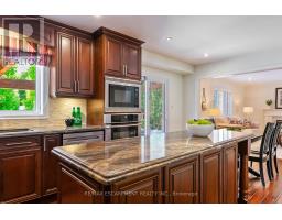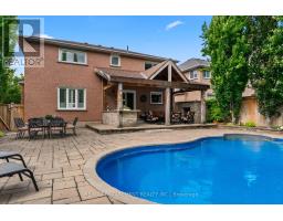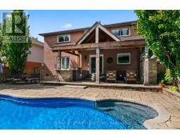 Tucked away on a quiet cul-de-sac in highly sought-after River Oaks, this home boasts 4,050 sq. ft. of impeccably maintained interiors and is the perfect fusion of sophisticated style and everyday family comfort. The open-concept main floor features hardwood flooring throughout, a dedicated home office, and a bright, airy living space anchored by a stunning bay window that floods the home with natural light. The chef-inspired kitchen boasts a large island, built-in appliances, a walk-in pantry, and an eat-in breakfast area perfect for everyday family meals and casual entertaining. A spacious laundry/mudroom with direct garage access adds everyday convenience. Upstairs, you'll find four generous bedrooms, including a primary suite with a private ensuite, plus an additional full bathroom with double sinks for the family. The finished lower level offers incredible versatility with a large recreation/gym area, a fifth bedroom with its own 3-piece bathroom, and plenty of storage space. Step outside to your private backyard oasis a beautifully landscaped retreat complete with a salt-water pool, covered Douglas Fir timbered Pergola, built-in BBQ, gas fireplace, and in-ground irrigation system, all surrounded by mature trees offering privacy and tranquility. Located within walking distance to Holy Trinity Catholic Secondary School and just minutes from all the amenities in the Uptown Core neighbourhood, as well as Munns Creek trails and local parks. Situated in one of Oakville's most desirable and family-friendly communities and not to be missed, this exceptional home stands out from the rest and is ready to be enjoyed by its next family. Seller willing to consider Vendor Take-Back (VTB) financing for qualified buyers. (id:61594)
