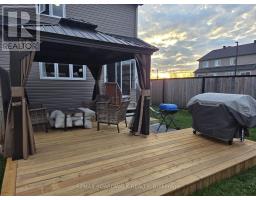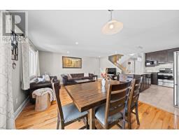 PERFECT STARTER HOME! This 3-bedroom end unit townhome is located in the family-friendly Morris Village community. Step inside to a welcoming entrance and an open-concept main level filled with natural light. The upgraded kitchen features a large island, granite countertops, stainless steel appliances, and flows seamlessly into the dining and family room. Upstairs, find three generously sized bedrooms with recently upgraded hardwood flooring. The primary bedroom includes a walk-in closet and a cheater door to the spacious five-piece bathroom. The fully finished basement offers a large family room and plenty of storage. Enjoy the backyard oasis with a large L-shaped deck (2025), gazebo with netting and privacy curtains (2025), 4x4 ft interlock paver area for BBQ (2024), shed (2022), partially fenced yard (2022), and elevated garden bed (2022). Well maintained and move-in ready - don't miss the chance to make it yours! (id:61594)