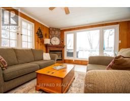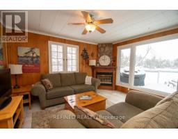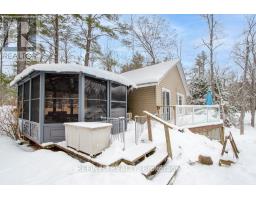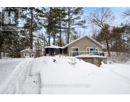 Enjoy highly-desired Stoney Lake on Sunrise Bay! This four-season cottage nestled amongst a variety of trees sits on approx. 3/4 of an acre with year-round road access. Private laneway leads to generous parking area with turn-around space. Inside features 3 bedrooms, 1 washroom, kitchen and open concept living room with cozy gas fireplace and large lakeview window (2024). Step out to front lakeview deck with clear glass panel railing or enter the three-season sunroom (2025) on side deck. Bonus insulated bunkie with hydro provides extra sleeping room for guests and two portable shelters (2025) provide room for storage of landscape equipment and a boat or car. Approx. 136 feet of water frontage features two docks (main dock removable for winter) and boathouse with auto garage door opener and crank cable boat lift for convenient winter storage. New water pump installed 2025. Take advantage this winter and embrace this all-season serenity now! (id:61594)