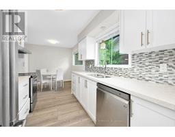 Welcome to this bright & spacious, well-maintained & updated, 4 bedroom, 2 full bathroom detached home with a double driveway and double garage, on a premium ravine lot, 1/3 acre, with rare 78ft wide x 213ft deep lot, in the very desirable and sought-after, family-friendly neighbourhood of Elizabeth Gardens in southeast Burlington. Featuring 1728sqft of finished living space, plus the sunroom and unfinished basement, an updated eat-in kitchen with quartz countertops, stainless steel appliances, backsplash, double sink, and white cabinetry including a double pantry, living room with bay window and barn door, separate dining room, a sunroom with skylight and sliding doors to the deck and backyard, 3 bedrooms on the upper level including the spacious primary with ensuite privilege, a renovated 5pce main bath with quartz countertop, double sinks, and beautiful wall tile in the tub/shower, a spacious family room with gas fireplace and sliding doors to the patio and backyard, a 4th bedroom on the lower level, plus a renovated 3pce bathroom and separate side entrance on the lower level which makes an ideal teen retreat or in-law potential, basement with laundry area and plenty of storage space, a beautiful, extra deep private backyard with park-like feel backing on to Appleby Creek, plus a patio with awning, deck with gazebo, raised garden planters, fire pit, and fruit trees, all make this is an ideal yard for relaxing or enjoying with family and friends, and the front yard with a large covered porch, and a driveway for 4 cars, plus 2 in the garage. Updates include renovated kitchen and both bathrooms, luxury vinyl floors, lighting, Furnace, and AC, all in 2020, double garage door and opener in 2021, and roof about 5-7 years old. A prime south Burlington location, steps to quality schools, the lake, parks, community Center, shops, dining, and more, and literally just minutes to highways, the GO, and endless other great amenities. Don't hesitate and miss out! Welcome Home! (id:61594)
