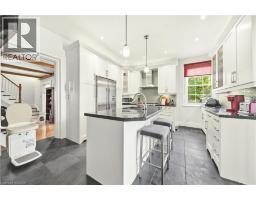 Location, Updates, and Charm! This 1885 double brick home is larger than it appears from the street. Featuring 4 bedrooms, a den, and 2.5 baths, there's plenty of room for everyone. The 2 story board-and-batten addition blends seamlessly with the original structure and includes thoughtful details, such as a repurposed leaded glass window in the mudroom. The chef’s kitchen offers granite counters, a large centre island, slate flooring, and ample cupboard space. The formal living room features original pine plank floors, recessed lighting, and an electric fireplace, while the dining room, accented by a stained glass transom window, comfortably fits a large table. The spacious family room impresses with beamed ceiling, brick accent wall, cozy wood stove, hardwood floors, and two walkouts to the backyard. Two staircases lead upstairs where you'll find a large primary suite with built-ins, and 3 pc ensuite, plus 3 additional bedrooms, a bright den, 5 skylights, and a Jack-and-Jill bathroom featuring a large walk-in shower with built-in bench. Enjoy a 69-foot frontage and a fully fenced yard offering privacy for the heated, inground saltwater pool, deck, two patios, and landscaped gardens. Single car garage and private driveway. Perfectly situated close to downtown Dundas with its shops, cafes, restaurants, and galleries. Just a short walk to the Dundas Little Theatre, Dundas Community Pool and J.L. Grightmire Arena. Close to excellent schools, parks, trails and the Dundas Valley Golf and Curling Club. Short drive to McMaster Hospital/University, Westdale and Highway Access. This is a true gem in historic Dundas. (id:61594)