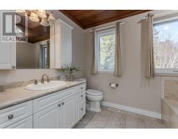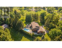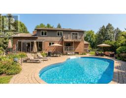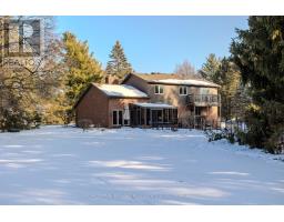 Tucked in the breathtaking Escarpment, this extraordinary multi-acre property offers a rare opportunity to own a nature paradise backing onto the Bruce Trail. With 3486 sqft of living space and panoramic views, this is where privacy, adventure, and family living come together. A long wraparound driveway welcomes you home, offering ample parking. Landscaping, interlock walkway, and covered front porch create warm curb appeal surrounded by mature trees. Inside, hardwood floors flow throughout the main level, where timeless design meets function. The formal dining room features wall-to-wall windows and is anchored by a stunning dual-sided brick fireplace. On the opposite side, the sunken living room features vaulted ceilings and access to a glass-enclosed heated sunporch-an ideal space to enjoy every season. The kitchen blends beauty and function with a tile backsplash, granite countertops, rich wood cabinetry, black stainless steel appliances, and a dedicated coffee bar. A cozy sitting room with walkout to a private balcony, a home office for remote work or homework time, and a 2-piece powder room complete the main level. Upstairs, the expansive primary retreat offers its own private balcony and a spa-inspired ensuite with a soaker tub and wood panel ceiling. Two additional well-sized bedrooms and a beautifully finished 3-piece bath with glass walk-in shower provide comfort and space for the whole family. The fully finished lower level extends your living space with a large rec room featuring a wood-burning stove and an additional flex room perfect for a gym, playroom, or guest suite. Step outside to a massive, private backyard surrounded by mature trees and uninterrupted escarpment views. Enjoy summer days in the fenced inground pool, entertain on the interlock patio, or explore directly from your yard onto the scenic Bruce Trail. With endless green space for kids and pets to roam, this is a lifestyle defined by nature, freedom, and unforgettable family moments. (id:61594)