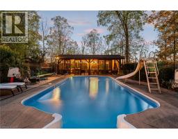 A rare and remarkable opportunity to own one of Smithville’s most distinguished and private properties. This stately Colonial-style home sits on 1.26 acres of professionally landscaped grounds, surrounded by mature trees and backing onto the picturesque Twenty Mile Creek. With no rear neighbours, and set far back from the road, the home offers unmatched serenity and curb appeal in a setting that feels like a country retreat right in town. With 5 bedrooms, 3.5 bathrooms, and 3871 sq ft of finished living space, this home offers exceptional indoor-outdoor living for any sized family. Outside will feel like your own private resort, boasting an in-ground pool, massive screened-in gazebo with a built-in BBQ and dining area, professional landscaping, and endless space for kids to play or to entertain in style. The heart of the home is a stunning white kitchen with glass cabinetry, quartz countertops, hardwood floors, and views to the lush backyard. Downstairs, a finished walk-up basement with a fully equipped in-law suite, provides versatility for multi-generational families, guests, or income potential. A double garage, long private drive, and functional indoor-outdoor spaces make this home feel like your own secluded estate. This is more than just a home; it’s a one-of-a-kind lifestyle opportunity right in the heart of Smithville. (id:61594)