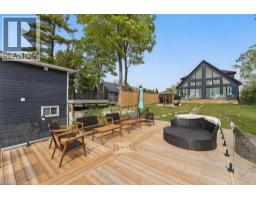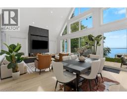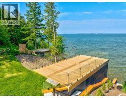 ALL BRAND-NEW FURNITURE IS INCLUDED IN THE PRICE. Don't miss out on this one-of-a-kind Custom-built Tarion warrantied waterfront property with newly constructed boathouse! Walk through the beautifully stained fiberglass front door into the spacious foyer accented by 48 porcelain tiles. The Foyer opens out to the awe-inspiring great room/kitchen combo filled with natural sunlight pouring through the floor-to-ceiling high windows. Great room boasts soaring 24ft vaulted ceiling and wood cladded ridge beam! A 3-sided 5ft Marquis fireplace dressed in Marrakesh Wall paint complements the great room. Chef's custom kitchen boasts high quality quartz counters and backsplash, high-end appliances, large 4x9ft center island, and a slide-out and a walk-in pantry. Main floor offers 2 ample sized bedrooms, laundry, spa-inspired 4pc washroom & access to garage. Principal bedroom is equipped with a luxurious 5pc ensuite, walk-in closet with French doors and custom closet organizer. The second bedroom has a 3pc ensuite. Both the bedrooms have huge custom designed glass panes offering magnificent views of the lake! Walking out of the great room 8' tall sliding doors, you are greeted with a massive deck with a diamond insignia. The deck is equipped with a built-in gas BBQ with an outdoor fridge. A set of cascading stairs takes you down to the lush back yard and second massive diamond deck. The second deck sits atop the 16'x30' dry boathouse which has a massive 11' high door and a 60-amp subpanel. The boathouse is drywalled and finished. The fully finished basement includes and entertainment room and an exercise room. Other notable highlights: electric car charger rough-in in garage, water treatment equipment, water softener, hot tub rough-in, pot lights throughout, high end Riobel plumbing fixtures, smart thermostat, alarm system (monitored option), and a camera surveillance system. (id:61594)