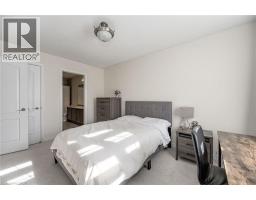 Gorgeous executive townhouse situated on a stunning 166-foot-deep lot backing onto Fourteen Mile Creek, surrounded by lush greenery in Oakville’s sought-after Bronte Creek community. This beautifully upgraded home offers 3 bedrooms plus a second-floor office space, and 3.5 bathrooms, along with two fireplaces. The main floor features dark hardwood flooring, oak stairs with iron picket railings, 9-ft smooth ceilings, and pot lights throughout. The modern kitchen boasts granite countertops, a stylish backsplash, stainless steel appliances, a center island, and a bright eat-in area. Enjoy the open-concept living and dining space, complemented by a separate family room with a cozy gas fireplace. The luxurious primary bedroom includes a double-sided fireplace, walk-in closet, and a spa-like 5-piece ensuite with a soaker tub and glass-enclosed shower. Additional highlights include silhouette window coverings, upgraded light fixtures, and a convenient second-floor office. The partially finished basement offers two separate staircase accesses, a 4-piece bathroom, and a large, bright recreation room—perfect for a home theatre—plus ample storage space. Washer updated in 2023. Ideally located close to Oakville Hospital, major highways, kilometres of scenic trails, and a wide range of local amenities. A beautiful family home you won’t want to miss! (id:61594)