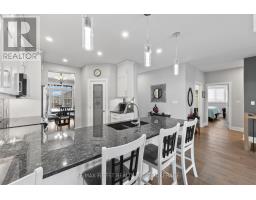Experience the exceptional craftsmanship of Hamilton Custom Homes in this luxury executive bungalow, where every detail has been thoughtfully designed for comfort, style, and functionality. Step inside to discover coffered ceilings, rich hardwood and tile flooring, and elegant plantation shutters, creating a warm yet sophisticated atmosphere. The open-concept layout is perfect for both daily living and entertaining. The gourmet kitchen features granite countertops, a stylish backsplash, stainless steel appliances, a large island, and an inviting eat-in area that walks out to the back deck. The spacious family room, highlighted by a gas fireplace, is the heart of the home, offering a cozy yet refined space to relax. A second gas fireplace in the professionally finished lower level adds warmth and ambiance to the large rec room, which is accompanied by two additional bedrooms and a full bathroom ideal for guests or extended family. The primary suite is a private retreat, featuring an oversized double closet and a spa-like 5-piece ensuite with a soaker tub, double vanity, and a glass-enclosed shower. The convenience of main-floor laundry adds to the homes practical design. Outside, enjoy the fully fenced, beautifully landscaped yard, complete with an in-ground sprinkler system for easy maintenance. An Amish-built shed provides additional storage, while the double garage ensures plenty of space for vehicles and gear. Located in a highly desirable area, this home offers easy access to top-rated schools, shopping, CFB Kingston, downtown, nature trails, a dog park, and the 401. With superior craftsmanship, premium finishes, and an unbeatable location, this Hamilton Custom Home is truly move-in ready just unpack and enjoy! (id:61594)