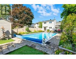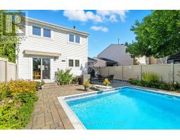 Beautifully cared-for END-UNIT townhouse offering privacy, style, and a prime location. This one-of-a-kind home features 3 bedrooms and 3 full bathrooms, including a stunning primary bedroom extension adding a large ensuite and walk-in closet truly unique on this street. One of the full bathrooms includes a walk-in tub for easy accessibility. Hardwood flooring throughout the main living areas adds warmth and elegance. The finished basement provides versatile space, perfect for a home office, gym, or entertainment area. Enjoy summer days in your inground pool, complete with a new pool pump (2025) and new pool vacuum (2025), surrounded by meticulously maintained landscaping and complete privacy with NO REAR NEIGHBOURS. Recent upgrades include new front bay windows installed in 2023, enhancing both charm and natural light. An exceptional opportunity to enjoy comfort, style, and functionality in a sought-after community. (id:61594)