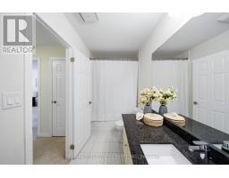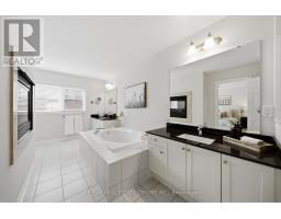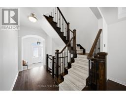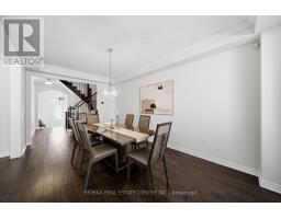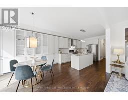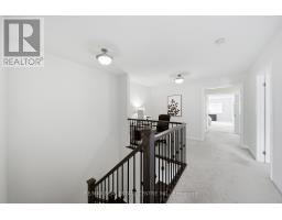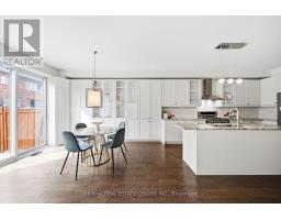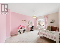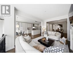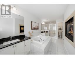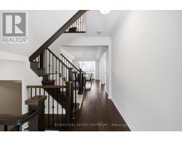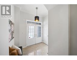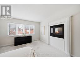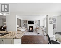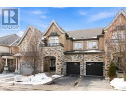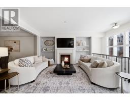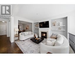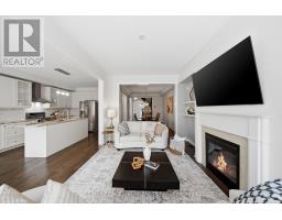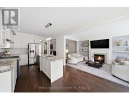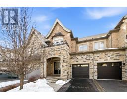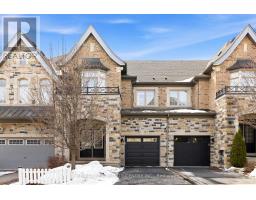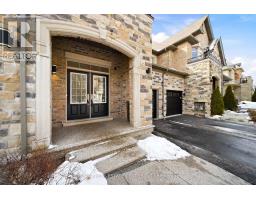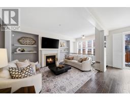 Welcome to this executive townhome nestled in a private enclave in Oakville's prestigious Bronte Creek community. Beautiful curb appeal with stone arched entrance, double front doors and lookout balcony. Designed for spacious and luxurious living, this home offers 9' ceilings and rich plank hardwood flooring throughout the main level. The open-concept layout features a combined living and dining room highlighted by crown moulding and elegant coffered ceilings, flowing seamlessly into the family room with a cozy gas fireplace. The modern white kitchen is beautifully appointed with extended cabinetry including pots-and-pan drawers, granite countertops, stylish backsplash, and stainless steel appliances. A sliding glass door leads to the fully fenced backyard with stone patio-perfect for outdoor entertaining. A convenient laundry room and powder room complete the main floor. Upstairs, the expansive primary retreat showcases a unique double-sided gas fireplace, walk-in closet, and spa-inspired ensuite with double sinks, granite counters, separate glass shower, and soaker tub. Two additional bright bedrooms, a full main bath, and a versatile second-floor office loft complete the upper level. The professionally finished lower level offers quality plank laminate flooring, pot lights, and exceptional additional living space including a large recreation room, teen retreat, additional 4th bedroom and full 4-piece bathroom. Ideally located within walking distance to schools, parks, and scenic trails, and just minutes to shopping, transit, and major highways-this home delivers the perfect blend of comfort and convenience. (id:61594)