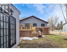 Welcome to this beautifully updated 3+1 bedroom, 2 full bath fully renovated and modern raised bungalow, perfectly situated on a large sun-filled lot, with a stream running along the north side offering a sense of tranquility. Parking for up to five vehicles, a generous backyard, greenhouse, spacious shed with electrical power, and a newly renovated deck (2024). This property is designed for both relaxation and functionality. Step inside to discover a thoughtfully designed open-concept main floor where style meets comfort. The custom open concept kitchen is a true showstopper, featuring luxurious finishes, quartz countertops, crown molding, gas range, pot filler, bar fridge, built-in wine rack, and a large island with an integrated breakfast bar-ideal for casual meals or entertaining guests. The seamless flow into the dining and living areas is accented by engineered hardwood flooring throughout creating a warm and inviting atmosphere. Unwind in the spa-inspired modern 3-piece bathroom complete with heated floors, dual sinks, and a spacious walk-in shower-your personal retreat at the end of the day! The professionally finished lower level offers incredible versatility with a separate ground-level entrance, high ceilings, and above-grade windows that flood the space with natural light. This level includes a large recreation room, an additional bedroom, 3 piece bathroom, and a modern kitchen with updated stainless steel appliances, making it perfect for multi-generational living or excellent income potential. A rare opportunity to own a home that truly combines comfort, elegance, and flexibility in a serene natural setting. (id:61594)